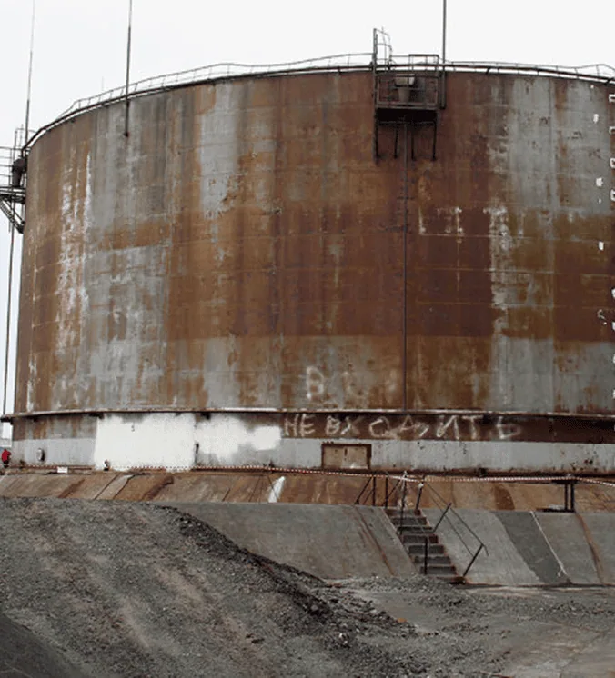 Проседание фундамента и опор резервуара из-за таяния вечной мерзлоты, что привело к разрушению железобетонного основания и просадке до 1,5 м под днищем резервуара. Часть свай не опиралась на скальный грунт, что вызвало неравномерное распределение нагрузки.