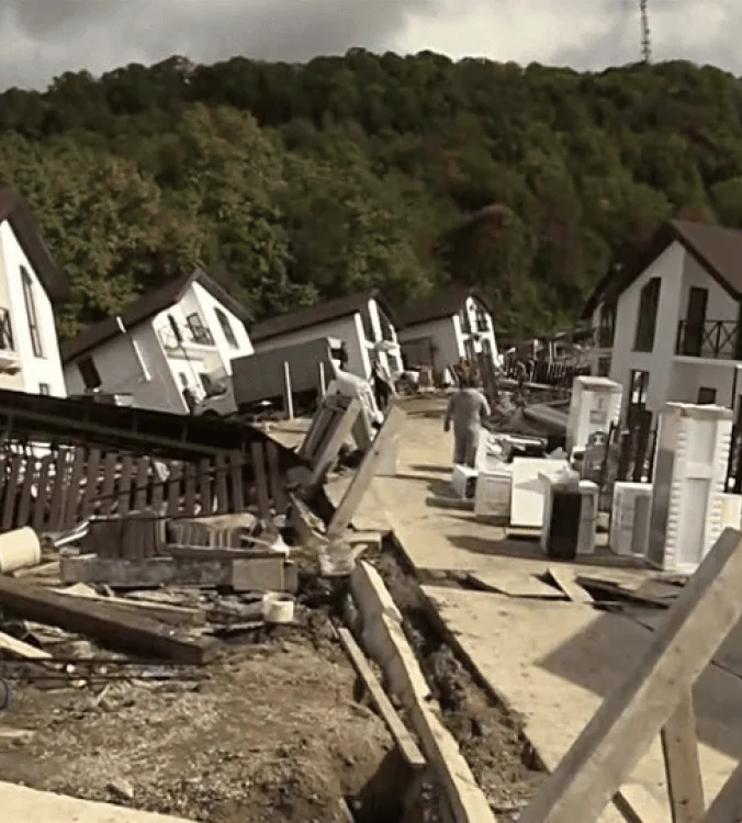 Расположение в зоне активных оползневых процессов, постройка домов на оползневом склоне без должного учёта геологических особенностей